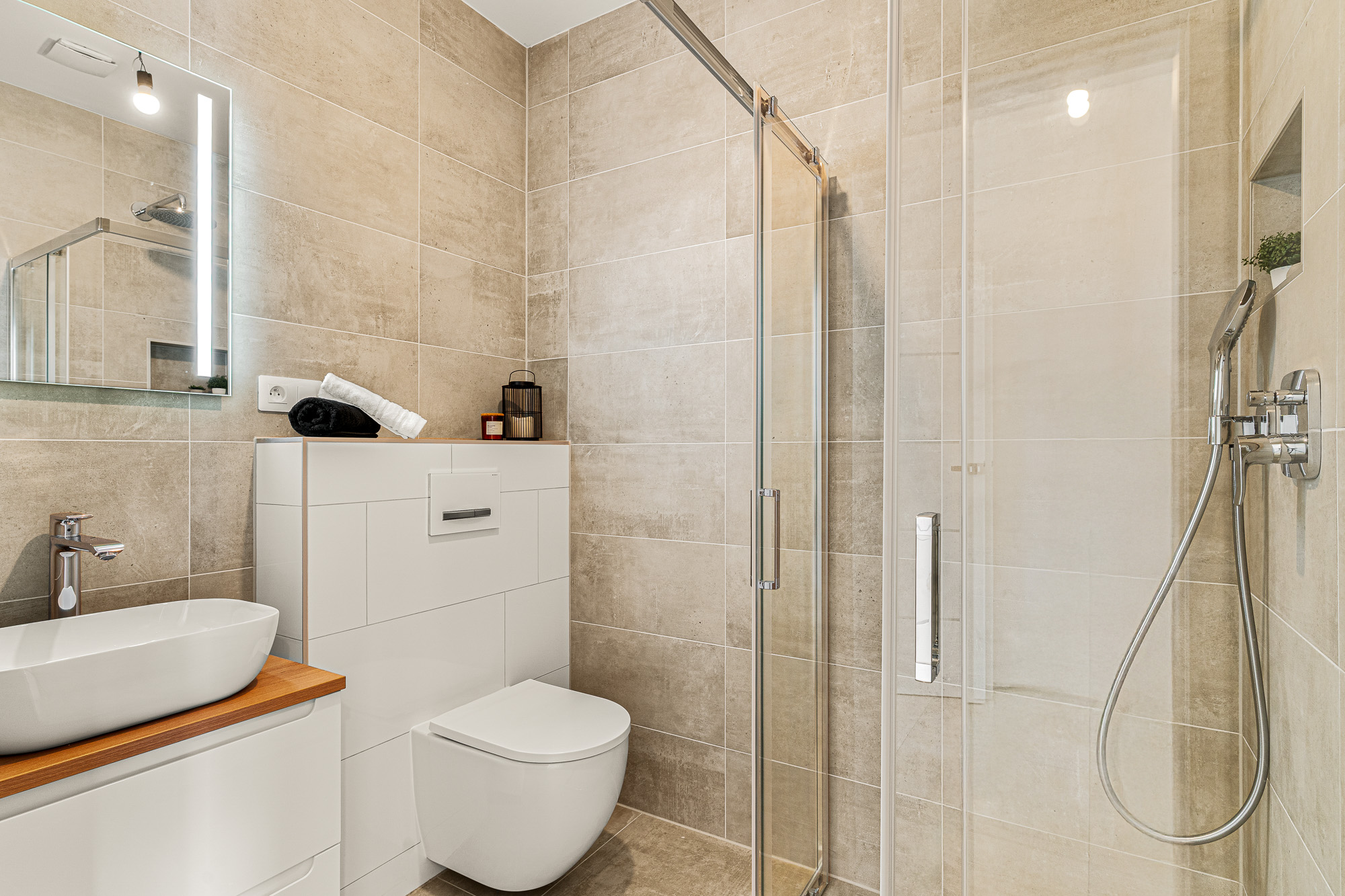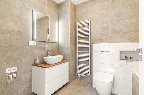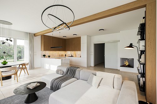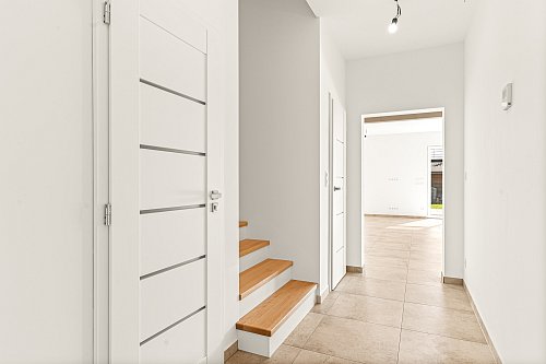 Stylová dřevostavba s prostornými místnostmi, kvalitním vybavením, nešetřilo se na materiálech, například u všech dveří domu, na značkové sanitě, u oken s trojskly použité hliníkové parapety a venkovní žaluzie, vše s důrazem na detail je připraveno k nastěhování. Kuchyni si vyberete podle vlastního vkusu, zahradu podle návrhu architekta. Díky přípravě na fotovoltaiku a kamerový systém získáte komfortní a úsporné bydlení. Sezónní věci snadno uložíte například v zateplené půdě domu.